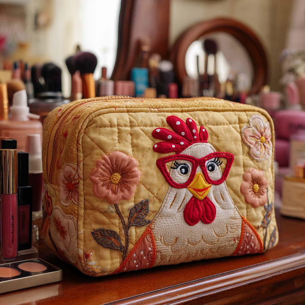 Chicken Shine Quilted Makeup Bag Chicken Motif Floral Trim