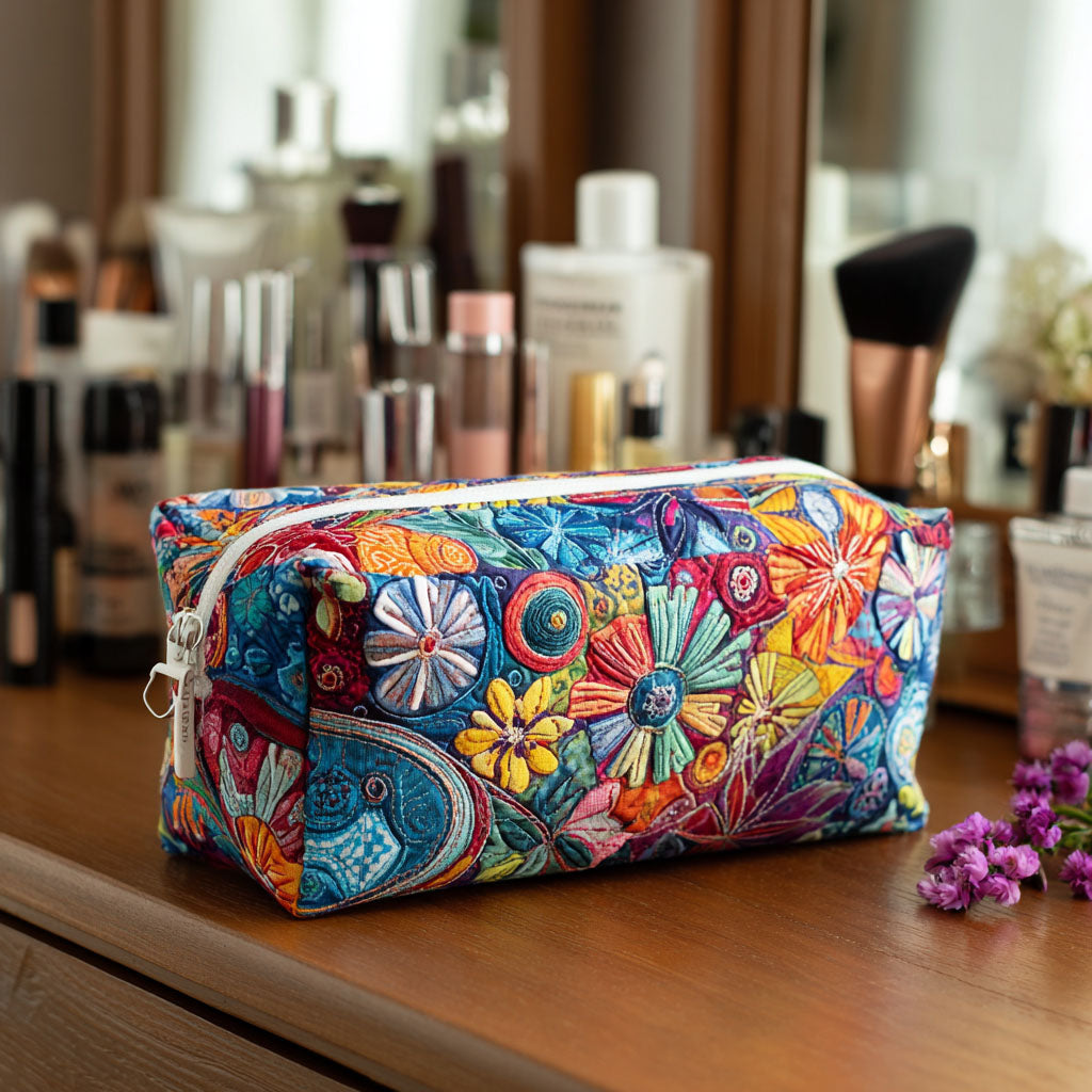 Wildflower Whimsy Quilted Makeup Bag Colorful Flower Print